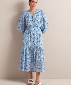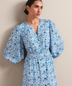 Cut from a beautifully light and drapey cotton viscose voile in two dreamy floral prints, Aspen is the ultimate throw-on-and-look-great summer dress. Machine washable, its flattering V-neckline, bracelet-length blouson sleeve and shirred waist, make it an effortlessly elegant, wear-on-repeat summer saviour.