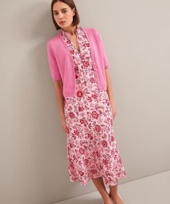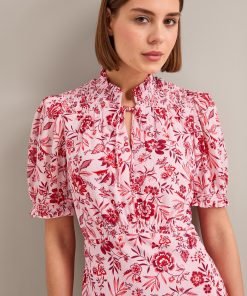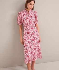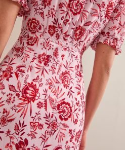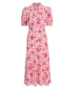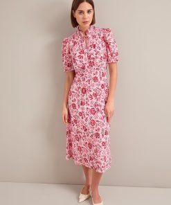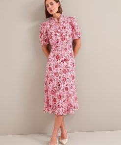 Irina Cotton Blend Midi Dress – Pink Palm Floral Print